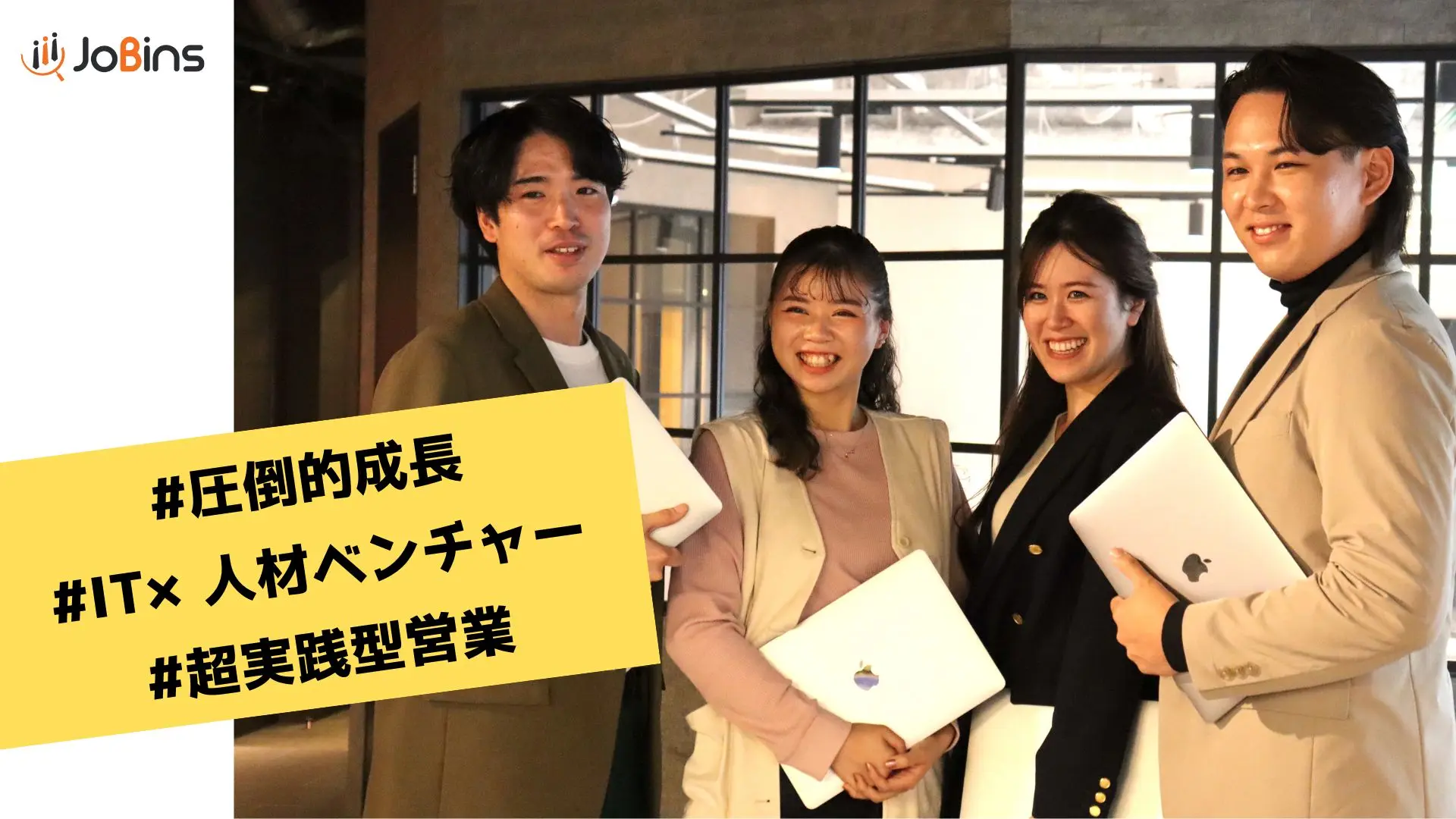 株式会社JoBinsは、キャリア採用(転職)領域の課題をテクノロジーで解決する大阪発のスタートアップSaaS企業で、エージェント連携システム「JoBins」の開発・運営を通じて“Chance For All”を掲げ機会創出を目指しています。